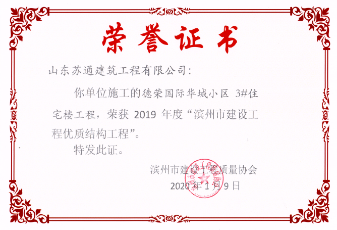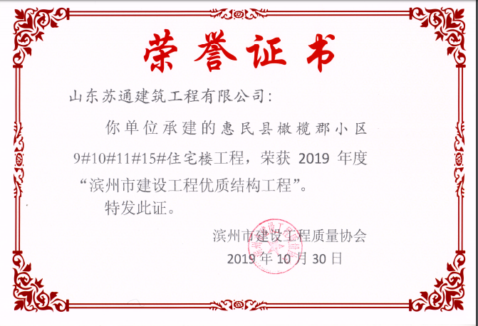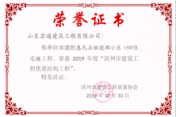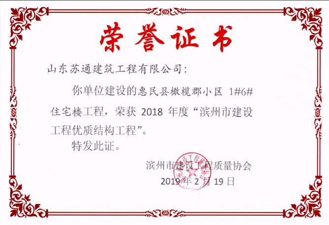 山东苏通建筑工程有限公司,创建于2009年8月。目前拥有房屋建筑工程施工总承包壹级、市政公用工程施工总承包叁级、水利水电工程施工总承包叁级资质,同时还具有建筑装修装饰工程专业承包贰级、消防设施工程专业承包贰级、钢结构工程专业承包叁级、建筑机电安装工程专业承包叁级等专业承包资质。 公司总部坐落于山东省滨州市滨城区黄河十二路877号,现有办公面积约2000平方米,机构设党支部工会办公室、总经理办公室、综合办公室、工程管理部、经营预算部、资产财务部、材料设备部、运行管理部、法律事务部等多个职能部门。公司管理体系已经通过了GB/T 19001及GB/T 50430质量管理体系、GB/T 24001环境管理体系(EMS)、GB/T 28001职业健康安全管理体系(OHSMS)等体系的认证。 公司承建完工了滨州市建大教师之家、建大清怡苑、香格里拉水岸绿城住宅小区、双泰建大城、曲阜崇德公馆住宅小区、北海新区御景蓝湾住宅小区、沾化德荣国际华城住宅小区、惠民橄榄郡住宅小区等工程项目,目前在建工程项目有:滨州市颐高国际电子商务产业园住宅小区项目、滨州市东盛国际项目、高新区建大中央华府住宅小区项目、滨州市融汇新里程住宅小区项目、滨州市建大秦皇壹号住宅小区项目、滨州市森林花...
