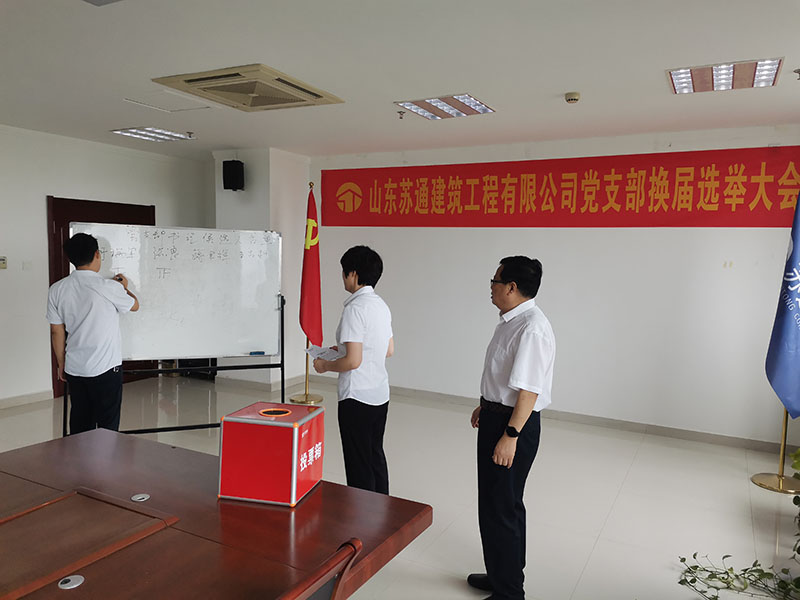 山东苏通建筑工程有限公司党支部成立于2021年7月12日,目前支部有党支部书记一名,正式党员5名,递交入党申请书4人。 公司党支部在彭李街道党工委领导和北海社区各位领导的大力支持和关心下,在党支部书记于瑞军和每名党员的共同努力下,苏通建工党支部正茁壮成长。 公司党支部的成立,是公司全体党员政治生活中的一件大事,也是加强党性锻炼和增强党员意识的一次具体实践。这对进一步加强基层党组织建设,充分发挥共产党员的先锋模范作用,提高基层党组织的战斗堡垒作用,促进公司各项工作的完成,必将产生重大的作用。